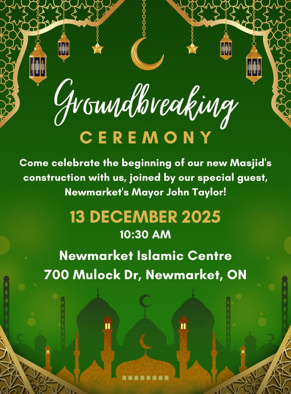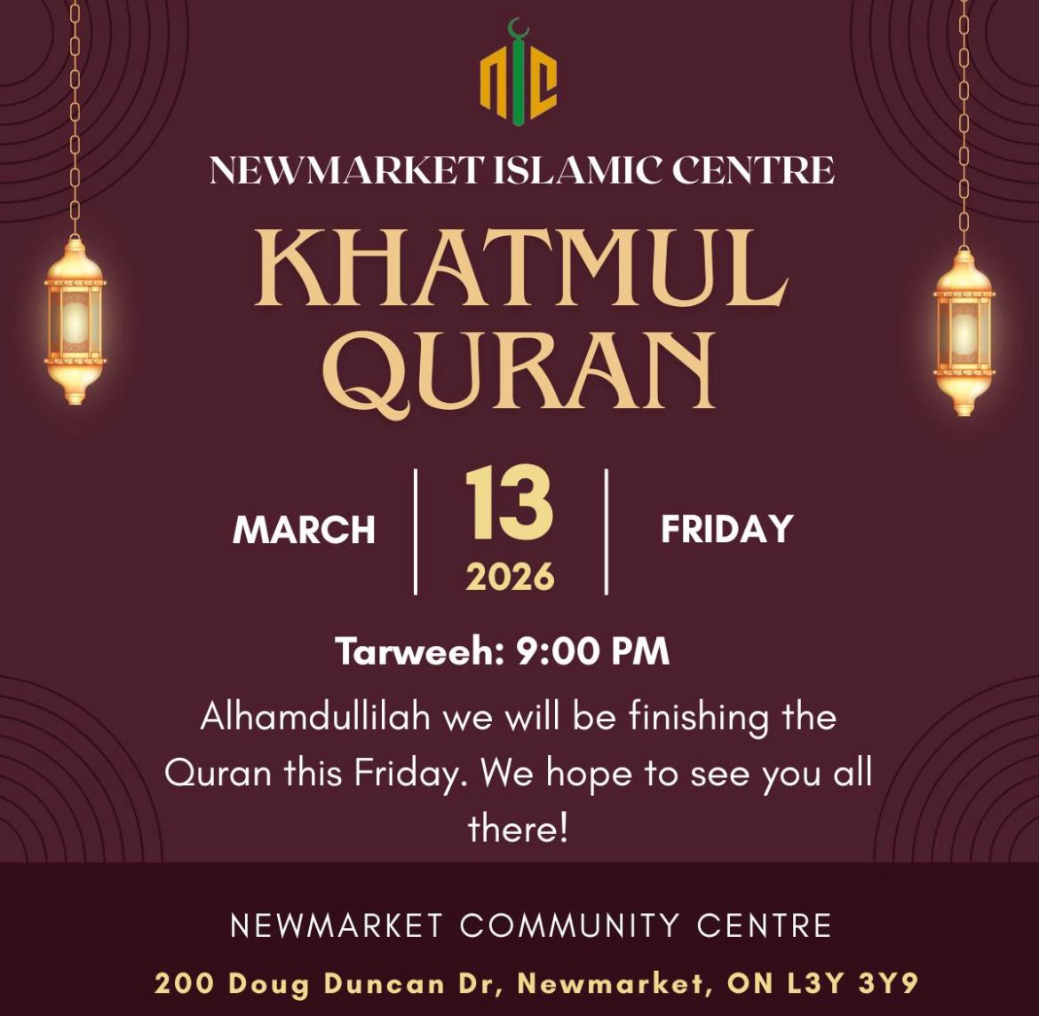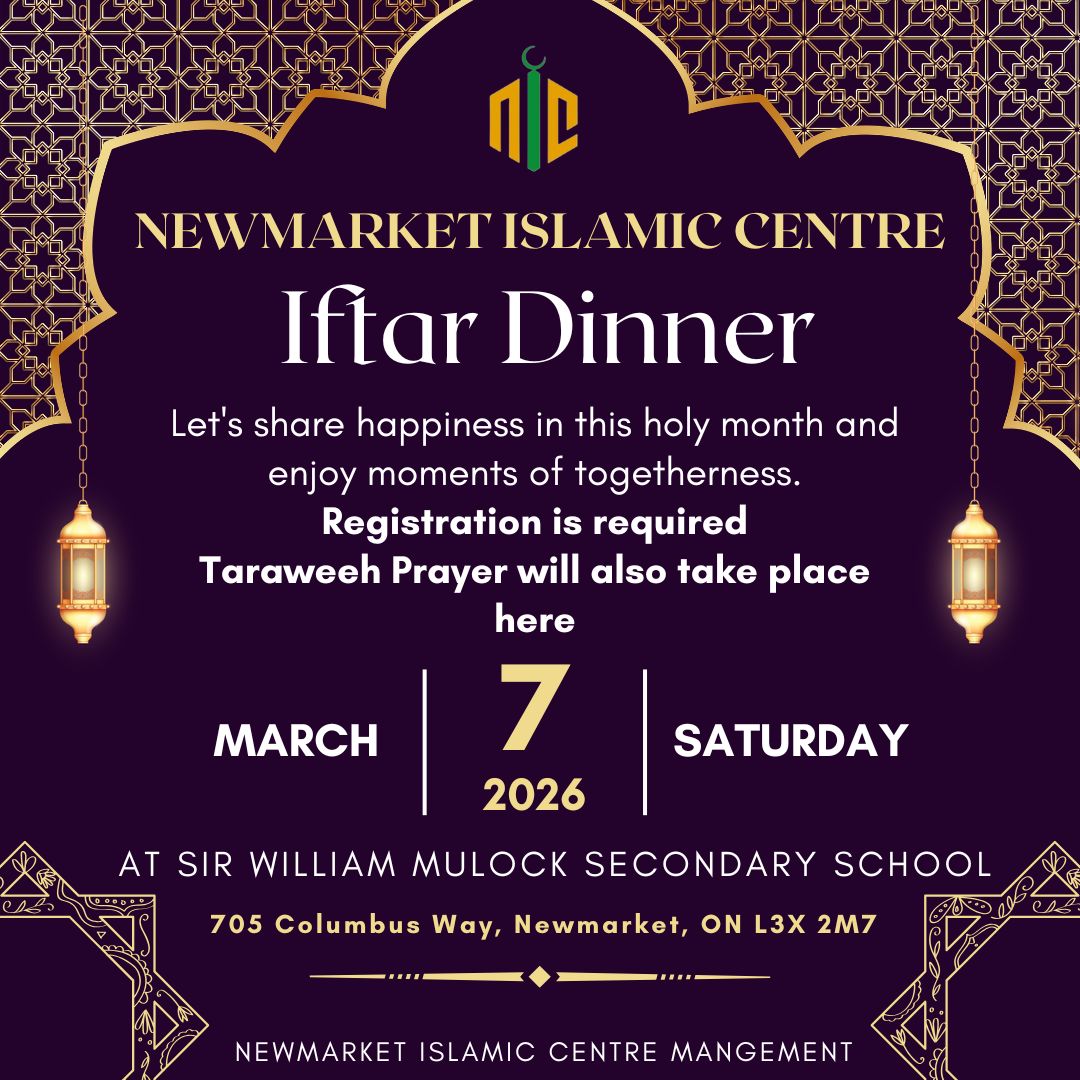 Jummah prayer will be held at our masjid — the Newmarket Islamic Centre.